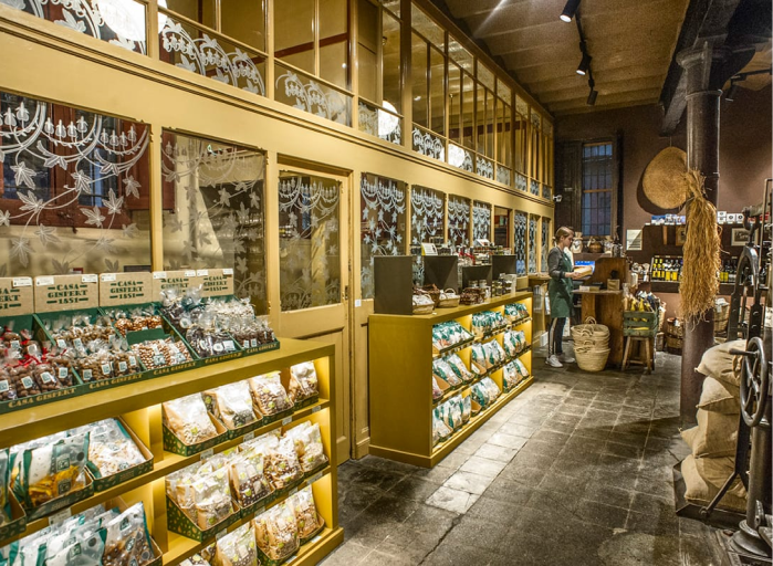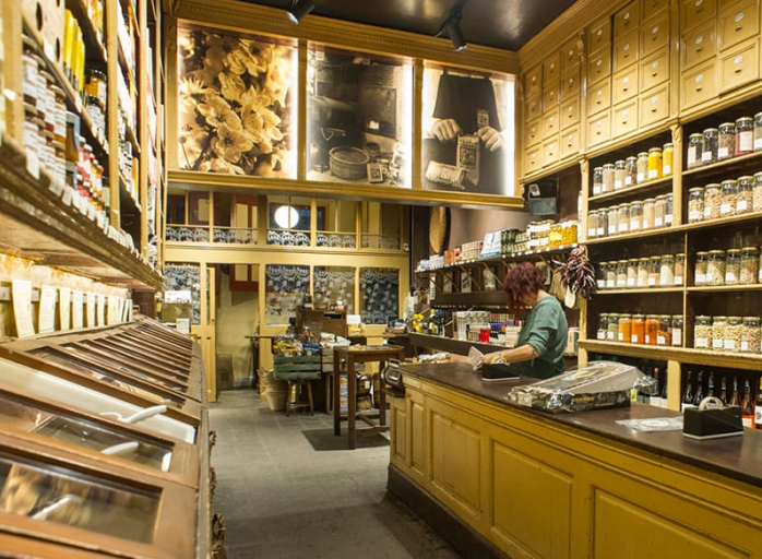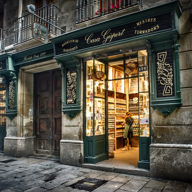 Casa Gispert es un negocio familiar que vende productos coloniales desde 1851: frutos secos, frutos desecados, café, té, cacao, especias como la vainilla, canela, azafrán, etc. El interior de la tienda ha sido conservado en su estado original, como un museo pero todavía funcionando. Su horno de leña, donde tuestan sus productos, es único en Europa.