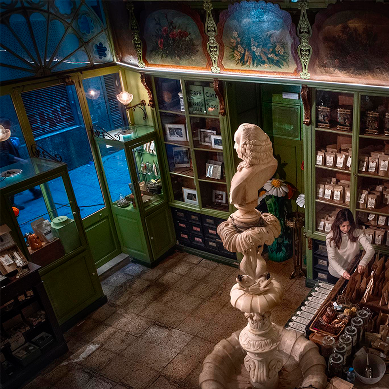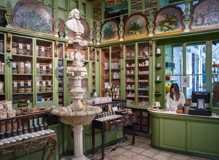 Este establecimiento sigue conservando la decoración interior de estilo isabelino fruto de una reforma en 1857, cuando pasó a ser proveedor de la casa real. En el centro del local destaca una fuente de mármol de Carrara coronada con un busto del naturalista Carl Von Linné. Se declaró Bien cultural de interés local y ha sido escenario de la película “El perfume”.
